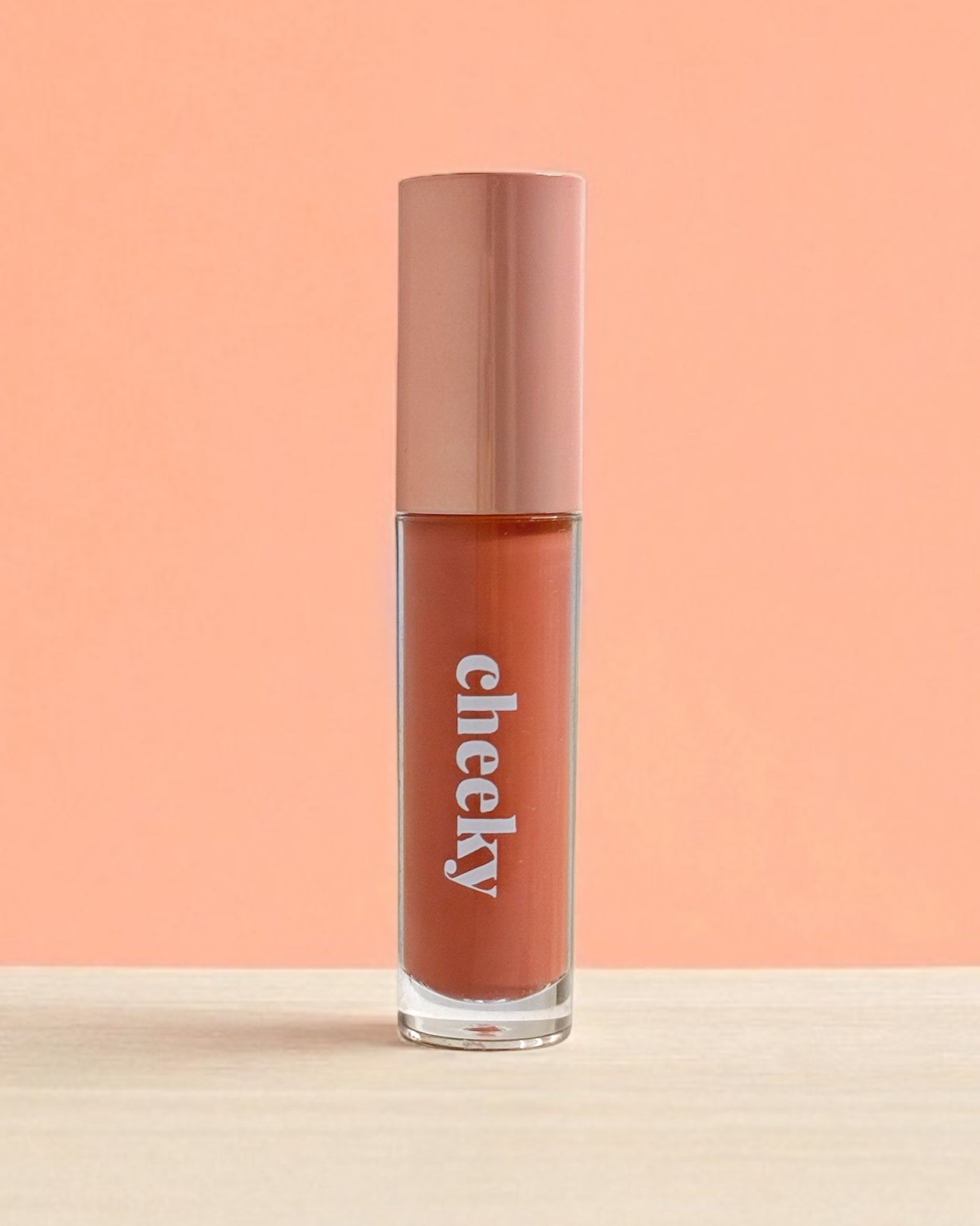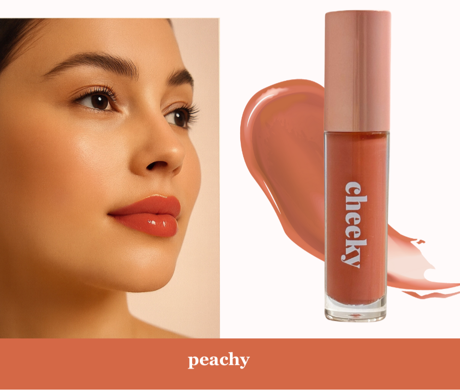 Get your glow on with our Cheeky Lip Gloss in "Peachy" – the perfect blend of juicy peach tones and glossy shine!
